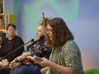 Дарья Беляева, специалист библиотеки, выступила с прозой «Окарина и сердце тундры». Кира Озерская прочитала триптих «Правила поведения для нелюдимых и дружелюбных», цикл «Его божественная милость» и стихотворения «Кафе «Ну такое» и «Княжны тишины». Игорь Берновский прочитал стихотворения «Кто крыса на кухне?», «Слово», «Через тернии к звездам», «Любовь это зеркало», «Балкон» и «Той самой ночью». Поэт так же поделился впечатлениями о литературном десанте: «Я выступал в этой библиотеке уже второй раз, и приняли нас также тепло. Зрители слушали внимательно, а после концерта не отпускали, пока не ответили на все вопросы. Я очень хочу приехать сюда снова».