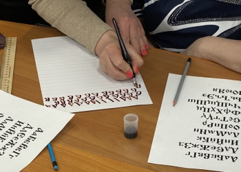 На мастер-классе по каллиграфии в стиле древнерусского письма участники получили навыки владения плакатными перьями и обращения с жидкой тушью, узнали маленькие тайны письма пером и чернилами. В результате участники клуба сделали открытки, оформленные буквицей и текстом. Каллиграфия — это полезное хобби, которое не только увлекает, но и развивает творческое начало, и учит писать красиво.