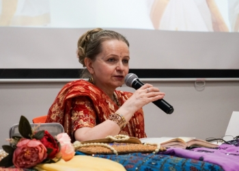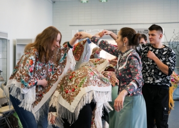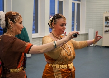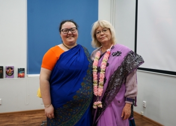 В рамках лекции «Сари: древнее, загадочное, женственное» сотрудники Центра ведической культуры в Мурманске Евгения Маркина и Ольга Куракина рассказали об истории и особенностях ношения сари. После мероприятия прошел мастер-класс по надеванию этой национальной одежды Индии.