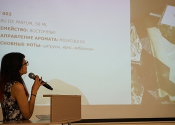 Слушатели лекции «Магия ароматов» узнали о том, как определять ноты в парфюме, на какие группы делятся ароматы, как правильно выбирать и наносить аромат. Гости смогли познакомиться с парфюмерными композициями от белорусских производителей, подобрать для себя аромат с помощью консультанта сети магазинов «Белорусская косметика» Валерии Демчук и территориального менеджера Кристины Селезневой.