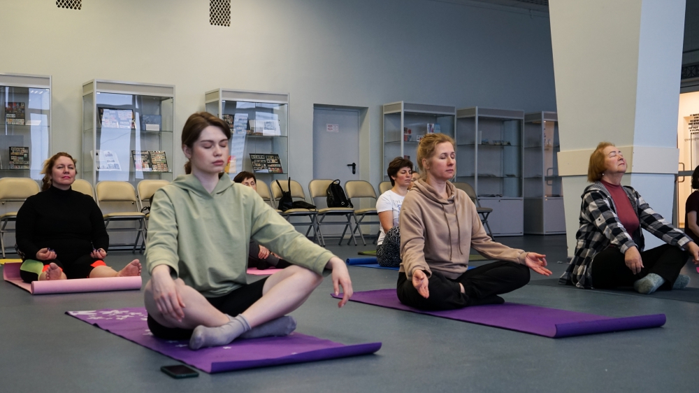 Гости узнали, чем полезна йога для женщин. Организатор и преподаватель Центра духовного, речевого и физического образования NAMASTE Марина Кизнякова рассказала, какие асаны оказывают наибольшее влияние и как правильно заниматься, чтобы стать здоровой и счастливой.