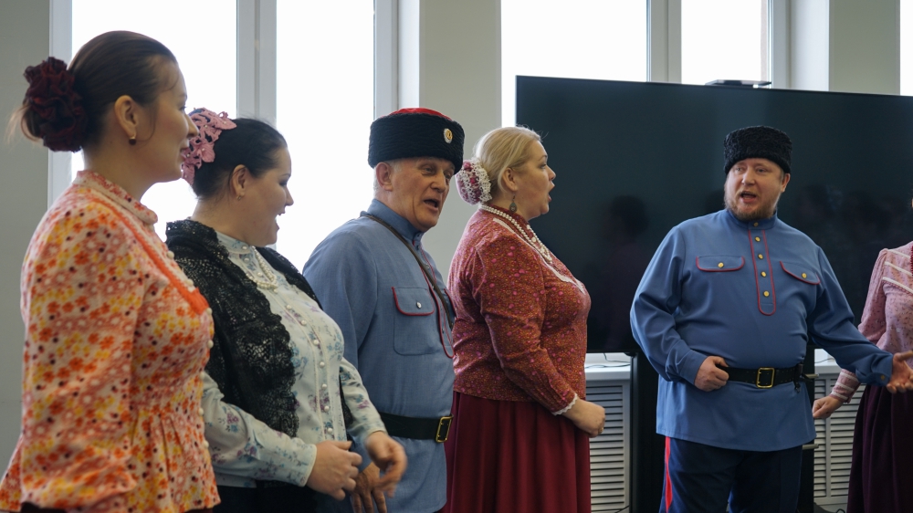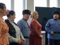 Яркие эмоции и незабываемые впечатления подарили зрителям казачьи песни в исполнении народного самодеятельного коллектива ансамбля казачьей песни «Северная станица» под руководством хормейстера Ивана Зайцева. В стенах библиотеки водили хороводы, прошел мастер-класс по крутке казачьей шашки от профессионала Ольги Соловьевой.