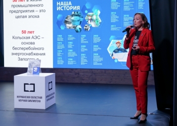 Специалист по связям с общественностью Кольской АЭС Ольга Александровна Патюкова познакомила присутствующих с новой книгой. Издание освещает историю атомной станции, уникальные события, ее традиции, рассказывает о заслуженных работниках, знакомит читателей с городом-спутником.