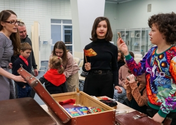 Для юных посетителей в День краеведа состоялись интерактивная площадка «Из советского детства» и мастер-класс «Северный морской». Участники узнали о жизни школьников советского Мурманска, попробовали писать пером и чернилами, а также сделали на память открытку в технике «айрис-фолдинг».