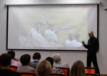 Лектором выступил Алексей Ежов, орнитолог, специалист по морским птицам Арктики, научный сотрудник Мурманского морского биологического института РАН и Кандалакшского государственного заповедника.