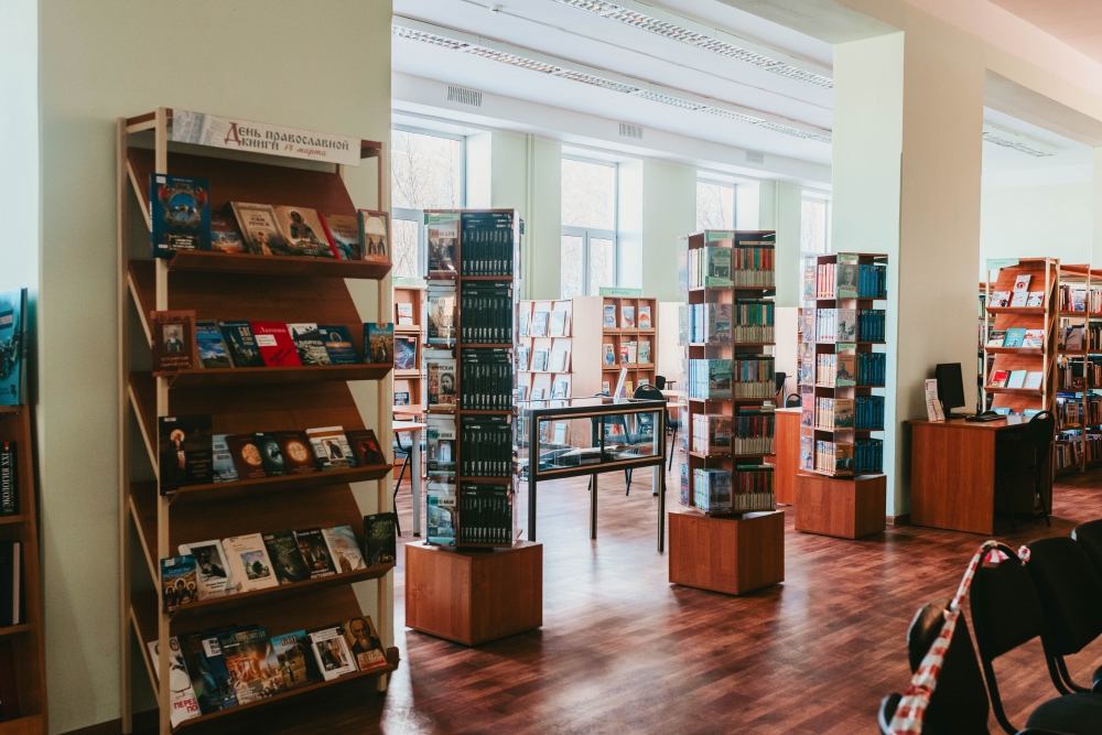 Зал находится на 2 этаже библиотеки (левое крыло).