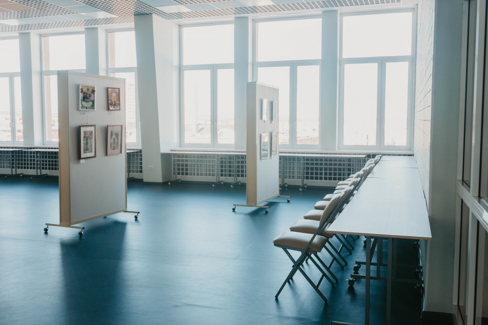 Зал-трансформер находится на 4 этаже библиотеки (центральный зал).