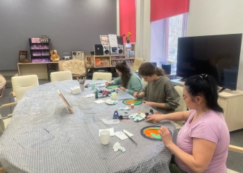 С помощью ярких акриловых красок получилось сделать своими руками настоящее произведение искусства. Участники нарисовали сказочного лисенка на фоне трав и цветов. Вместе с Анастасией Худяковой, сотрудником отдела информации по культуре и искусству, они прошли по всем этапам создания изделия.