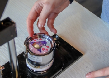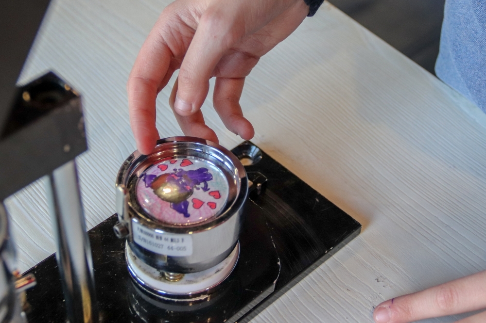 Самым увлекательным моментом стала работа со специальным аппаратом для изготовления значка! Под руководством специалиста библиотеки ребята самостоятельно собирали конструкцию: разместили рисунок в матрицу, установили металлическую основу и закрепили всё с помощью механизма. Один уверенный клик рычагом — и обычный рисунок превращается в блестящий профессиональный значок!