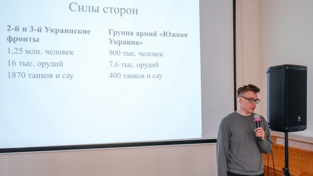 В ходе лекции слушателям представили данные о соотношении сил сторон к началу 1944 года, положение стран-участниц войны к указанному периоду, представлены планы советских и немецких войск. В основной части лекции была приведена хронология событий, рассказано о личностях, которые стояли за успехом Красной Армии в этих кампаниях. Тема вызвала большой интерес среди студентов и любителей истории.