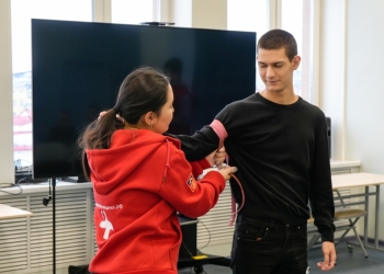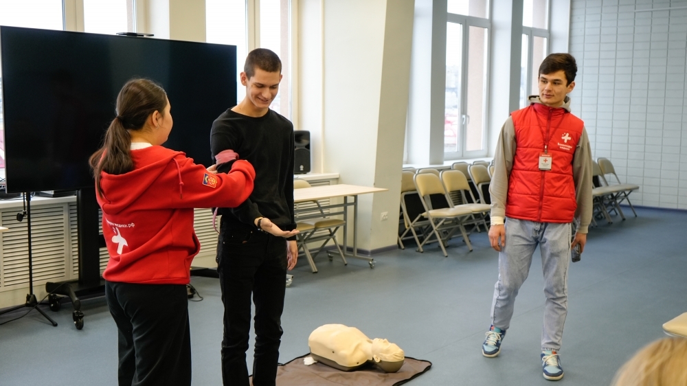 Школьники на практике изучили правильное наложение жгутов при венозном и артериальном кровотечении, использование метода Геймлиха в случае закупоривания дыхательных путей, на манекене потренировались в оказании первой помощи при обмороке, остановке сердца. Участники мастер-класса «Первая помощь» узнали, что эти меры проводятся до прибытия медицинского работника или доставки пострадавшего в лечебное учреждение.
