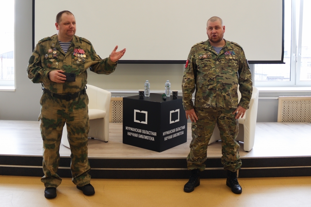 18 апреля в Мурманской областной научной библиотеки состоялось второе мероприятие из цикла «Среди СВОих» — «Беседа о важном в Научке». В гости в библиотеку пришли учащиеся Мурманского строительного колледжа, Мурманского международного лицея и 44 школы. Это мероприятие, организованное совместно со сторонниками партии «Единая Россия», стало частью масштабной акции «От героев прошлого к героям настоящего», приуроченной к Году Защитника Отечества. Тема встречи была посвящена современному героизму, рассматривая его не только сквозь исторические события, но и через призму специальной военной операции.