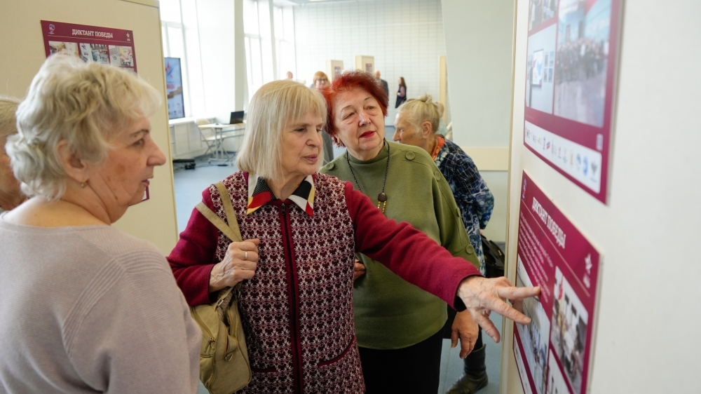 Она состоит из 35 стендов с информацией об истории акции, географии площадок, знаковых местах написания диктанта и самих участниках. Несколько стендов посвящены опыту проведения «Диктанта Победы» в Мурманской области.