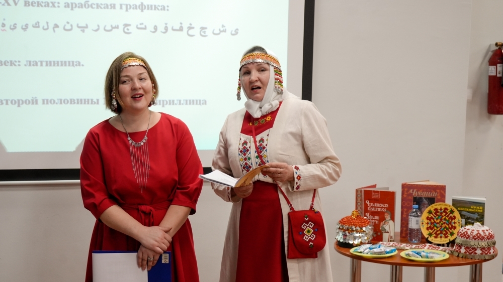Гости встречи познакомились с историей чувашского народа и письменности, значением орнамента костюмов, интересными фактами о чувашском языке и алфавите, потренировались в произношении и разучили по-чувашски самые известные слова: «Родина», «отец», «мама», «бабушка», «дедушка», «здравствуйте»!