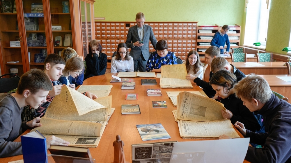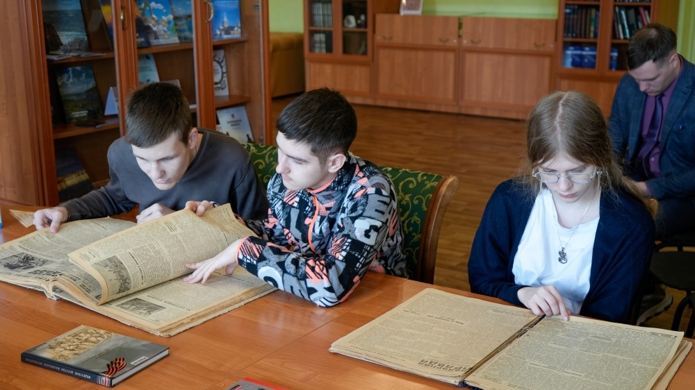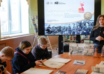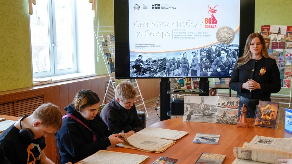 Школьники и педагоги ознакомились с материалами коллекции «Сохраняя память о войне» электронной библиотеки «Кольский Север», с фронтовыми письмами бойцов и командиров Карельского фронта и Северного флота и с отдельными периодическими печатными изданиями военных лет из фондов библиотеки. Также участникам встречи была представлена книжно-иллюстративная выставка «Битва за Север» с артефактами войны – вещами советских и немецких солдат и командиров, обнаруженных на полуостровах Средний и Рыбачий.