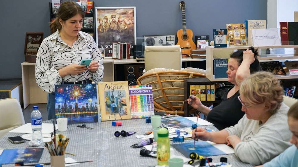 С помощью ярких акриловых красок получилось создать настоящее произведение искусства. Участники нарисовали торжественный праздничный салют и получили уникальный опыт работы с акрилом, освоили различные приемы рисования на холсте. Вместе с Анастасией Худяковой, сотрудником отдела информации по культуре и искусству, они прошли по всем этапам создания уникального изделия, научились новому и создали своими руками прекрасную картину.