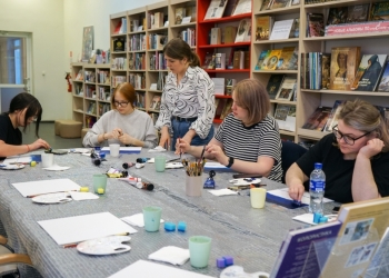 11 мая на мастер-классе «Праздничный салют» в зале искусств собрались любители рисования акрилом. Светлый весенний вечер идеально подошёл для создания необычной работы на холсте.