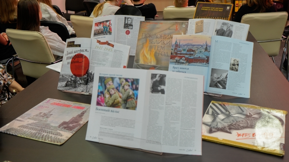 Еще одно мероприятие дня – музыкальная страничка «Песня тоже воевала: музыка Великой Отечественной войны на страницах журналов». Гости получили возможность прочитать о фронтовых бригадах артистов и знаменитых исполнителях тех лет, послушали грампластинки и компакт-диски с записями военных песен. Из музыкальных журналов посетители узнали, как разворачивалось песенное, в том числе партизанское, творчество в годы Великой Отечественной войны, познакомились с произведениями, сочиненными и опубликованными в этот период.