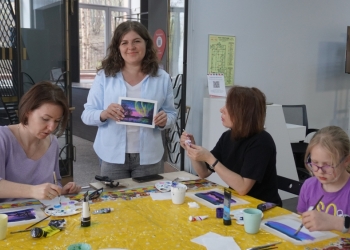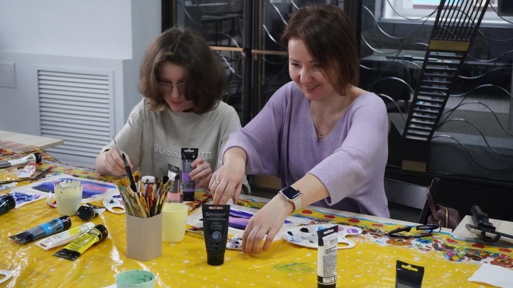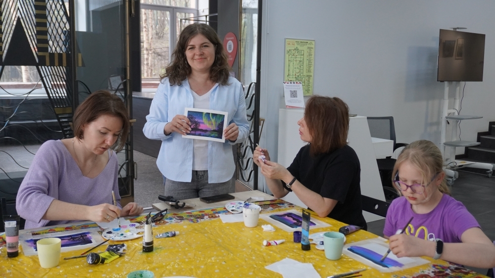Завершением насыщенного дня стал мастер-класс по рисованию северного сияния акрилом «Волшебный свет Севера». Участники научились передавать красоту полярного неба и создали свои неповторимые открытки.