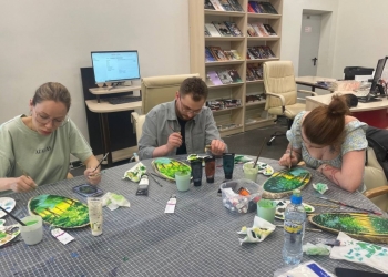 С помощью ярких акриловых красок получилось создать настоящее произведение искусства. Участники нарисовали солнечный лесной пейзаж и получили уникальный опыт работы с акрилом, освоили различные приемы рисования на спиле березы. Вместе с Анастасией Худяковой, сотрудником отдела информации по культуре и искусству, они прошли по всем этапам создания уникального изделия, научились новому и создали своими руками прекрасную подставку под горячее.