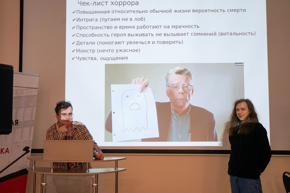 Первая летняя мастерская прозы литературного объединения была посвящена жанру хоррора. На примере рассказов Томаса Лиготти и Стивена Кинга участники разобрали механизмы формирования и воздействия эстетики литературы ужасов. В завершение были предложены творческие упражнения, направленные на раскрытие писательского потенциала.
