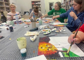 5 июля на мастер-классе «Дождливый парк» в зале искусств собрались любители рисования акрилом. Теплый вечер идеально подошёл для создания необычной работы на холсте.