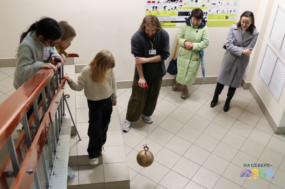 Продолжилось путешествие познавательным шоу «Фукотайм»: с помощью маятника Фуко дети доказали, что наша планета вращается вокруг собственной оси. Желающие смогли запустить его самостоятельно.