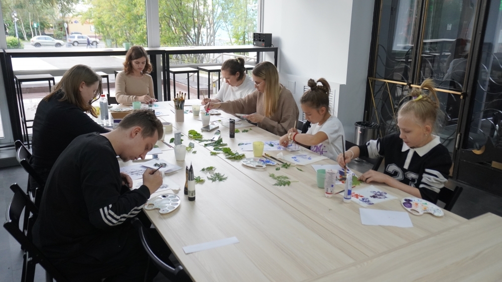 Занятие проходило под руководством Виктории Яковлевой, специалиста Мурманской областной научной библиотеки. Участники наблюдали, как из различных техник нанесения краски на листья создавались красивые узоры. Благодаря этому каждый смог почувствовать себя настоящим художником.