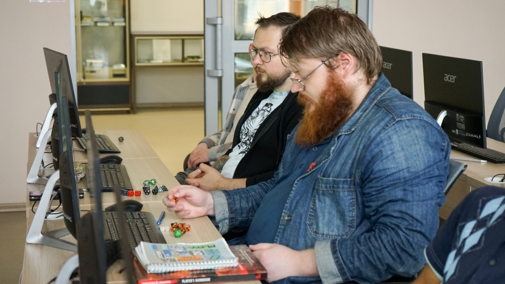 26 августа в Мурманской областной научной библиотеке впервые состоялись нарративные игры на основе системы Dungeons & Dragons – самой популярной настольной ролевой игры в мире. Это форма совместного повествования, где игроки не просто бросают кубики, а под руководством «мастера» погружаются в историю, которую вместе создают в процессе игры: отыгрывают роль собственного фэнтезийного персонажа, выполняют задания и сражаются с противниками. Диалоги, мотивы, решения и цифры, выпавшие на кубиках, – все это влияет на развитие сюжета и неожиданные повороты событий.