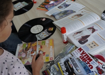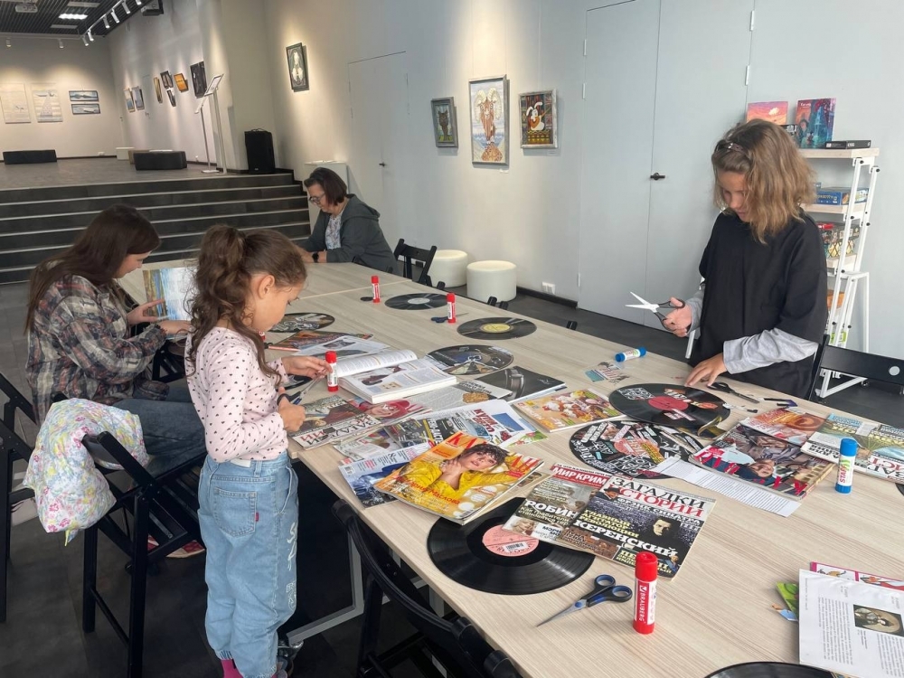 С помощью ярких журнальных вырезок гости Центра создали настоящие произведения искусства. Участники получили уникальный опыт работы с винилом, освоили различные приемы в технике коллаж.