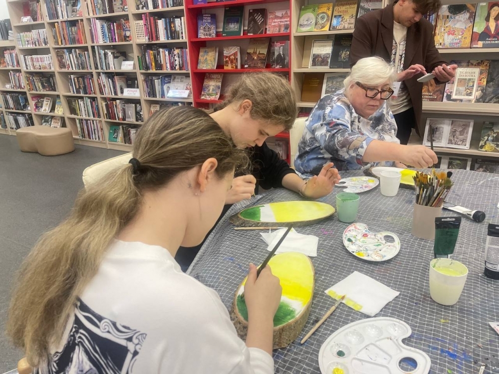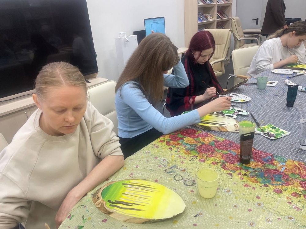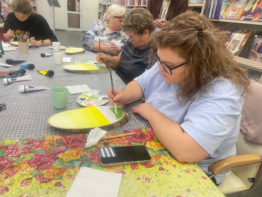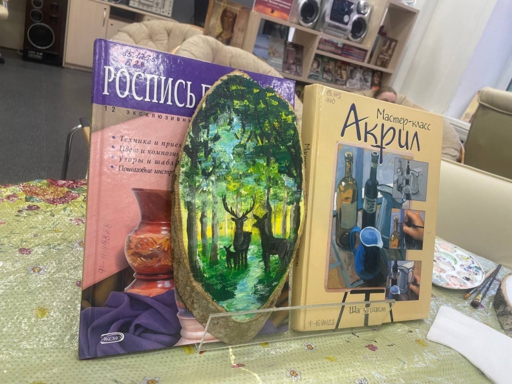 С помощью ярких акриловых красок получилось создать настоящее произведение искусства. Участники нарисовали солнечный лесной пейзаж и получили уникальный опыт работы с акрилом, освоили различные приемы рисования на спиле березы. Вместе с Анастасией Худяковой, сотрудником отдела информации по культуре и искусству, они прошли по всем этапам создания уникального изделия, научились новому и создали своими руками прекрасную подставку под горячее.