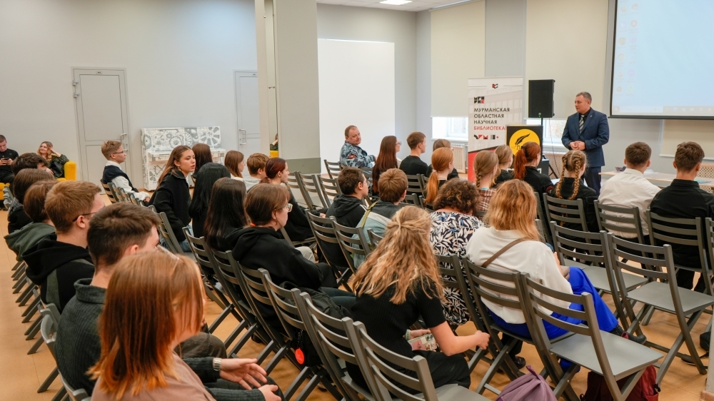 3 октября в Мурманской областной научной библиотеке состоялось третье мероприятие из цикла «Среди СВОих» — «Беседа о важном в Научке». В гости в библиотеку пришли учащиеся Мурманского строительного колледжа, Семейной школы «Галилео» и военно-патриотического клуба «Кобальт». Это мероприятие стало частью масштабной акции «От героев прошлого к героям настоящего», приуроченной к Году Защитника Отечества. Тема встречи была посвящена современному героизму, рассматривая его не только сквозь исторические события, но и через призму специальной военной операции.
