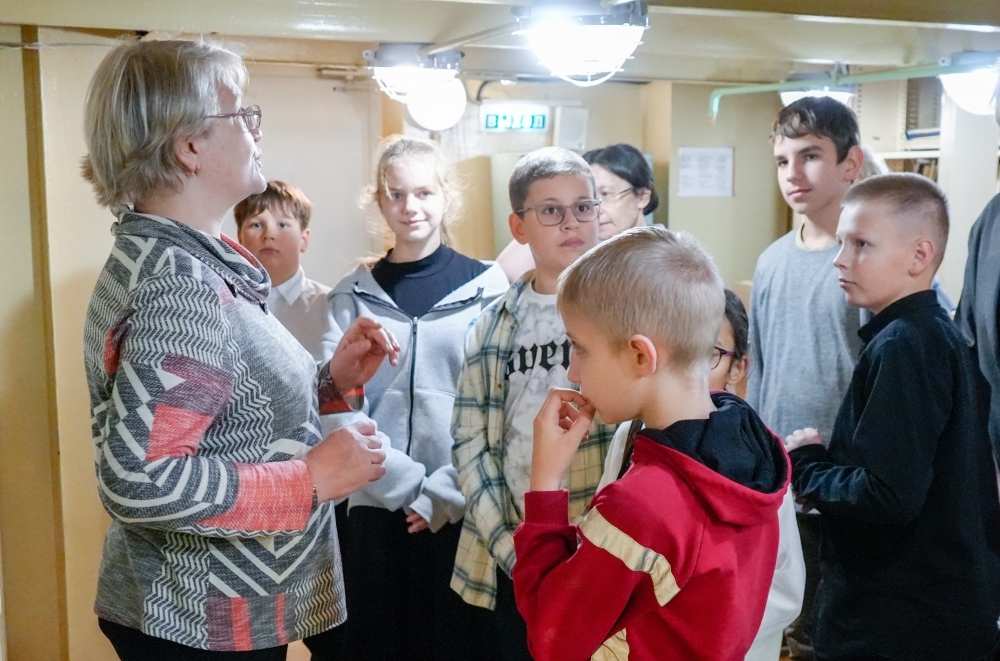 5 октября воспитанники воскресной школы при Свято-Никольском кафедральном соборе г. Мурманска и их родители побывали на экскурсии «Книжные лабиринты Научки». Ребята прошли по ярусам книгохранения, узнали, сколько изданий сегодня хранится в главной библиотеке области, как книги и газеты доставляются читателям из книгохранения в залы обслуживания, что такое форматная расстановка книг, почему в хранении всегда так мало света.