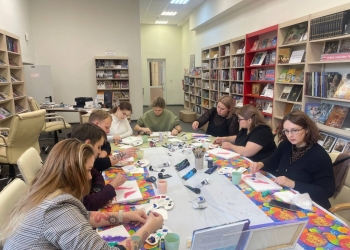 4 октября на мастер-классе «Над горами севера» в зале искусств собрались любители рисования акрилом. Прохладный вечер идеально подошёл для создания необычной работы на холсте.
