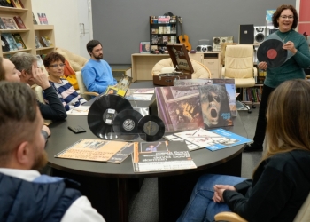 Фонотека Научной библиотеки – крупнейшее за Полярным кругом собрание звукозаписей на грампластинках, аудиокассетах, компакт-дисках. Гостям была проведена экскурсия с элементами квеста по выставке действующей звуковоспроизводящей ретротехники, они посетили закрытый фонд отдела, где хранятся свыше 16 тысяч пластинок, познакомились с различными видами и форматами дисков – гибкими, виниловыми, шеллачными и др., узнали секреты грампластинки, самостоятельно освоили работу старинного патефона и современного проигрывателя, прослушали редкие звукозаписи.