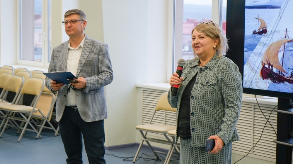 Специалист отдела библиотечного обслуживания Елена Кузнецова рассказала об уникальных изданиях и картографических материалах, представленных в экспозиции. Среди них – «Генеральная карта Архангельской губернии», составленная картографом Василием Пядышевым в 1824 году, лоции гидрографов Михаила Рейнеке и Николая Морозова, напечатанные в 1878 и 1901 годах, прижизненные издания научных трудов «Экспедиция для исследования русских северных морей» (1871 г.) географа, теоретика анархизма Петра Кропоткина и «Северный морской путь» (1912 г.) гидрографа, исследователя морей Северного Ледовитого океана Андрея Вилькицкого, «На юг, к земле Франца-Иосифа!» (1917 г.), первое издание дневника Валериана Альбанова, штурмана экспедиции Георгия Брусилова на шхуне «Святая Анна».