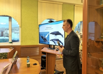 15 ноября в Мурманской областной научной библиотеке состоялась лекция заведующего лабораторией морских млекопитающих Мурманского морского биологического института РАН Александра Зайцева «Морские млекопитающие Баренцева и Белого морей».