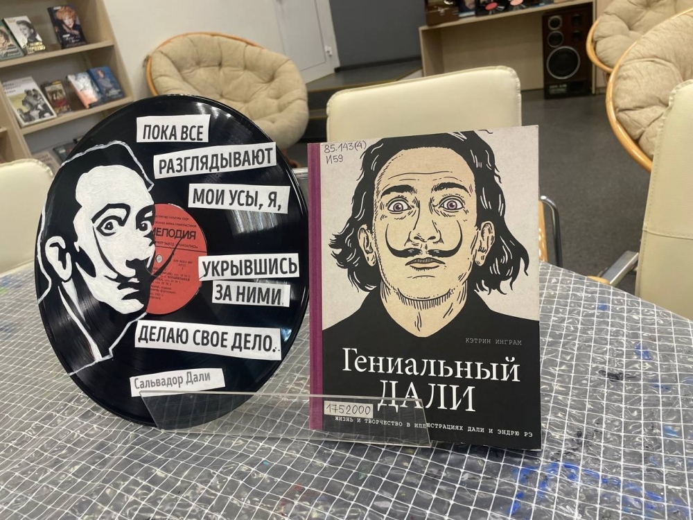 С помощью акриловых красок получилось создать настоящее произведение искусства. Участники нарисовали портрет Сальвадора Дали и дополнили композицию его цитатой. Художники получили уникальный опыт работы с акрилом, а так же освоили различные приемы рисования и коллажа, прошли по всем этапам создания изделия. Также, вместе с Анастасией Худяковой, сотрудником отдела информации по культуре и искусству, они увидели интересную литературу о творчестве великого художника, послушали виниловые пластинки из богатой коллекции фондов зала искусств.