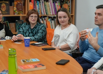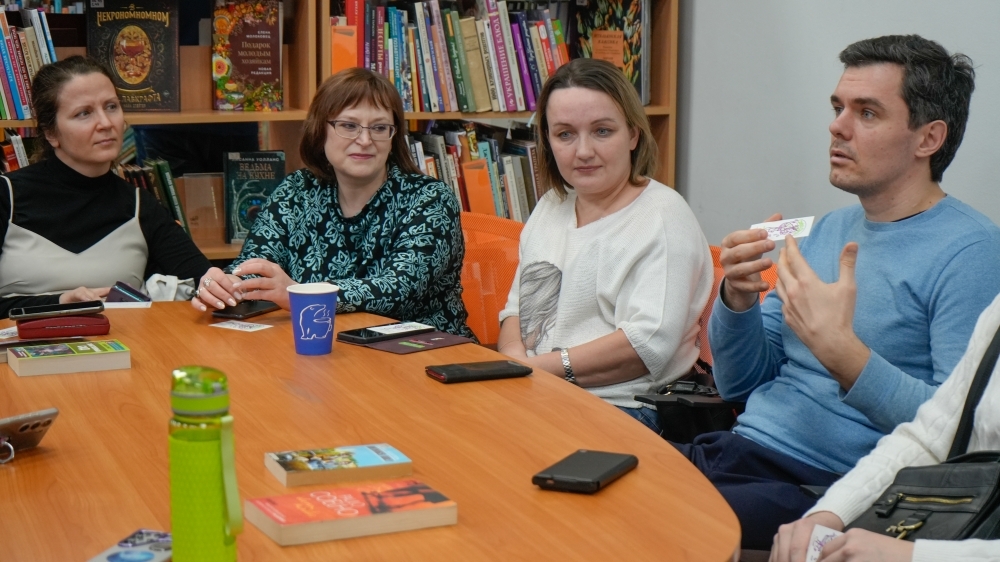 В ходе занятия участники отвечали на вопросы, напечатанные на карточках, обсуждали просмотренные видеофрагменты.