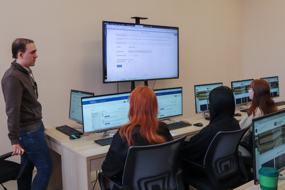 На занятии студентов познакомили с онлайн-услугами МГОУНБ, которые могут пригодиться в учебном процессе. Особенно ребят заинтересовали «Виртуальный библиограф» и «Электронная доставка документов».
