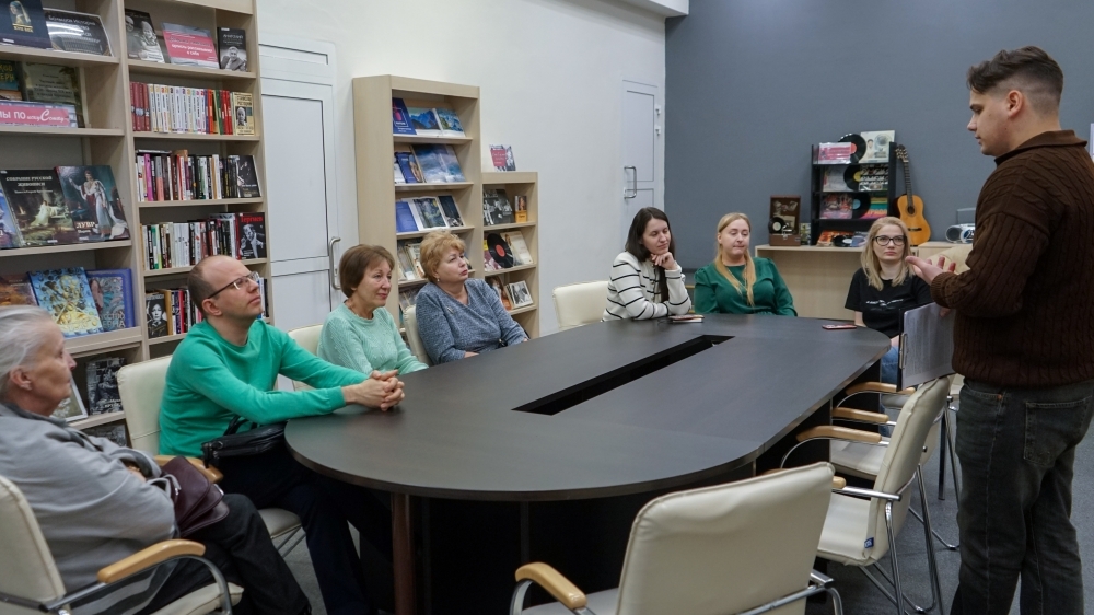 20 февраля в зале искусств состоялся виниловый вечер «Война, уступи место музыке». Ведущим выступил сотрудник Мурманской областной научной библиотеки Владимир Зевакин.