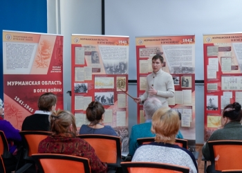 17 февраля 2026 года сотрудники Государственного архива Мурманской области представили участникам клуба «Старшие» передвижную выставку «Мурманская область в огне войны. 1941–1945 гг.» Экспозиция в виде шести ролл-апов, каждый из которых рассказывает о событиях войны за Полярным кругом, посвящена 80-й годовщине разгрома немецко-фашистских войск в Заполярье. Присутствующие увидели архивные документы о самых важных событиях военного времени на Кольской земле, о жизни северян на фронте и в тылу, о деятельности предприятий, партийных и военных органов по укреплению обороноспособности региона, о трудовых и боевых подвигах жителей Мурмана. Значимое место на выставке занимают документы, посвященные Петсамо-Киркенесской наступательной операции Советской армии. Выставка сопровождалась лекцией специалиста-экскурсовода Михаила Жидкова.