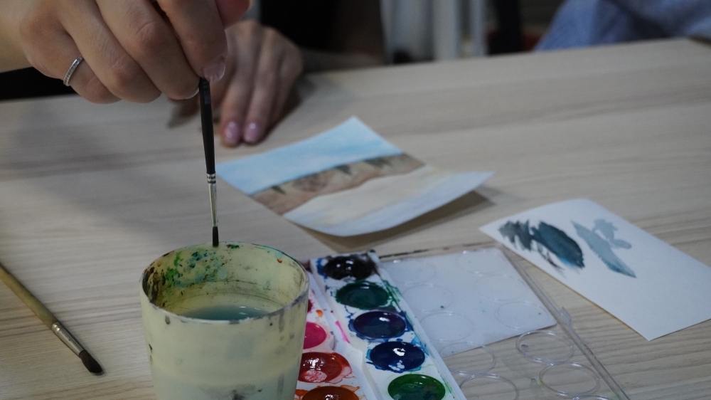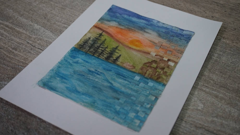 Каждый участник создал акварельный пейзаж, дополнив его элементами декора, выполненными в технике плетения. Таким образом, традиционные методы живописи гармонично объединились с современными техниками декорирования.