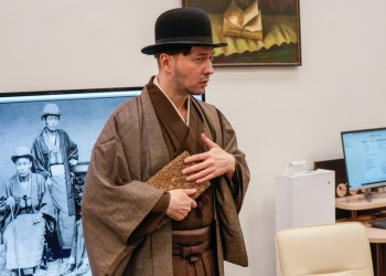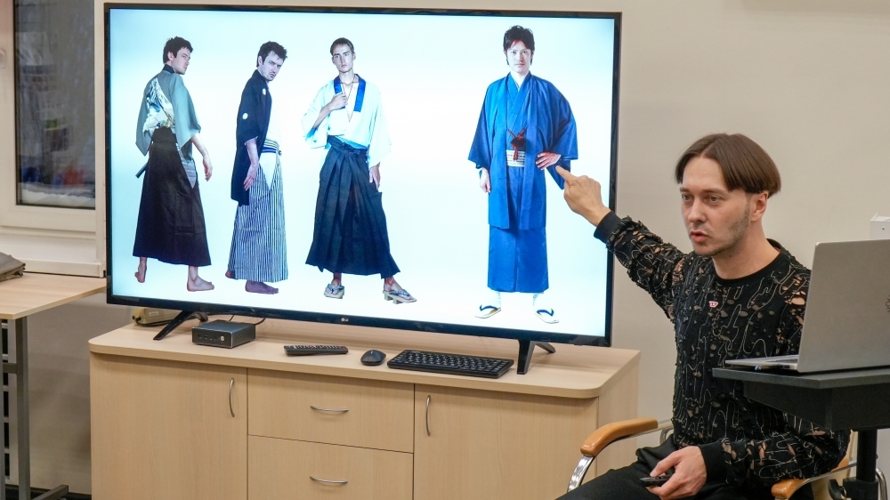 В рамках лекции художники представили вниманию публики редчайшие образцы подлинной японской одежды начала прошлого века. Андрей Скатков продемонстрировал эти исторические артефакты, облачившись в них, что позволило гостям в полной мере ощутить дух эпохи и оценить мастерство японских ремесленников.