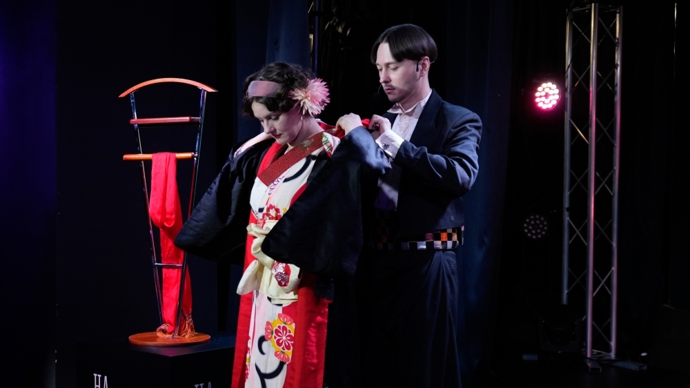 Но главное – это не просто рассказ! Кульминацией вечера стало настоящее шоу – облачение в подлинное японское кимоно прямо на сцене. Волшебство традиционного наряда, его крой, узоры и история – все это ожило на глазах изумленной публики.