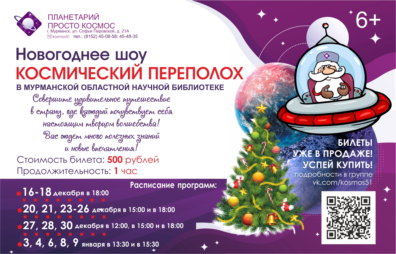 Планетарий «Просто космос» расположен на цокольном этаже Мурманской областной научной библиотеки. Современная проекционная система даёт возможность показа научно-образовательных программ, учебных фильмов и научных материалов в отличном качестве и для разной возрастной аудитории.