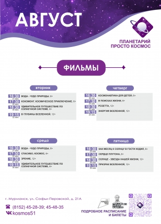 Ознакомьтесь с репертуаром Планетария и Правилами посещения Планетария.