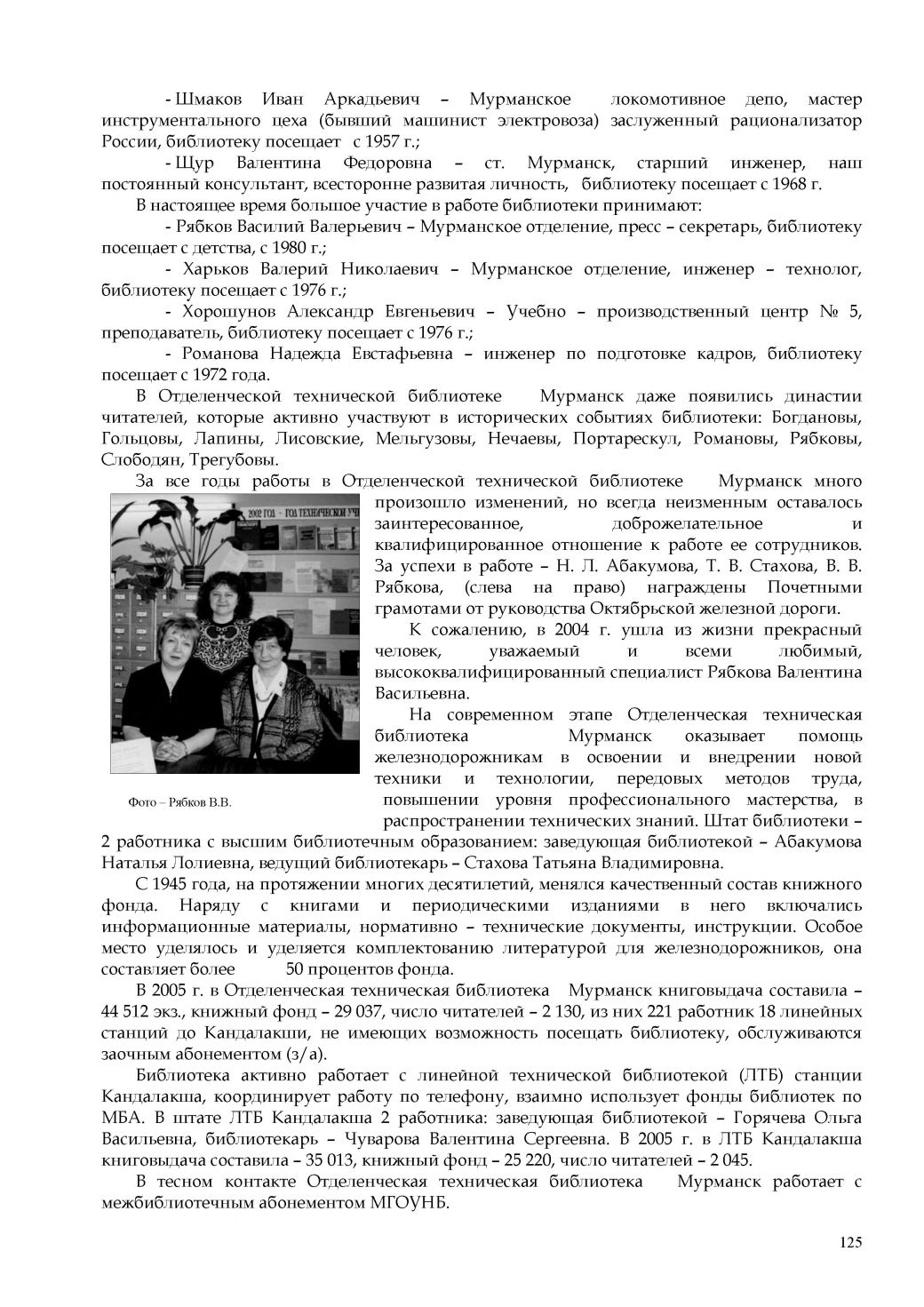 Васильевна, библиотекарь - Чуварова Валентина Сергеевна. В 2005 г. в ЛТБ Кандалакша