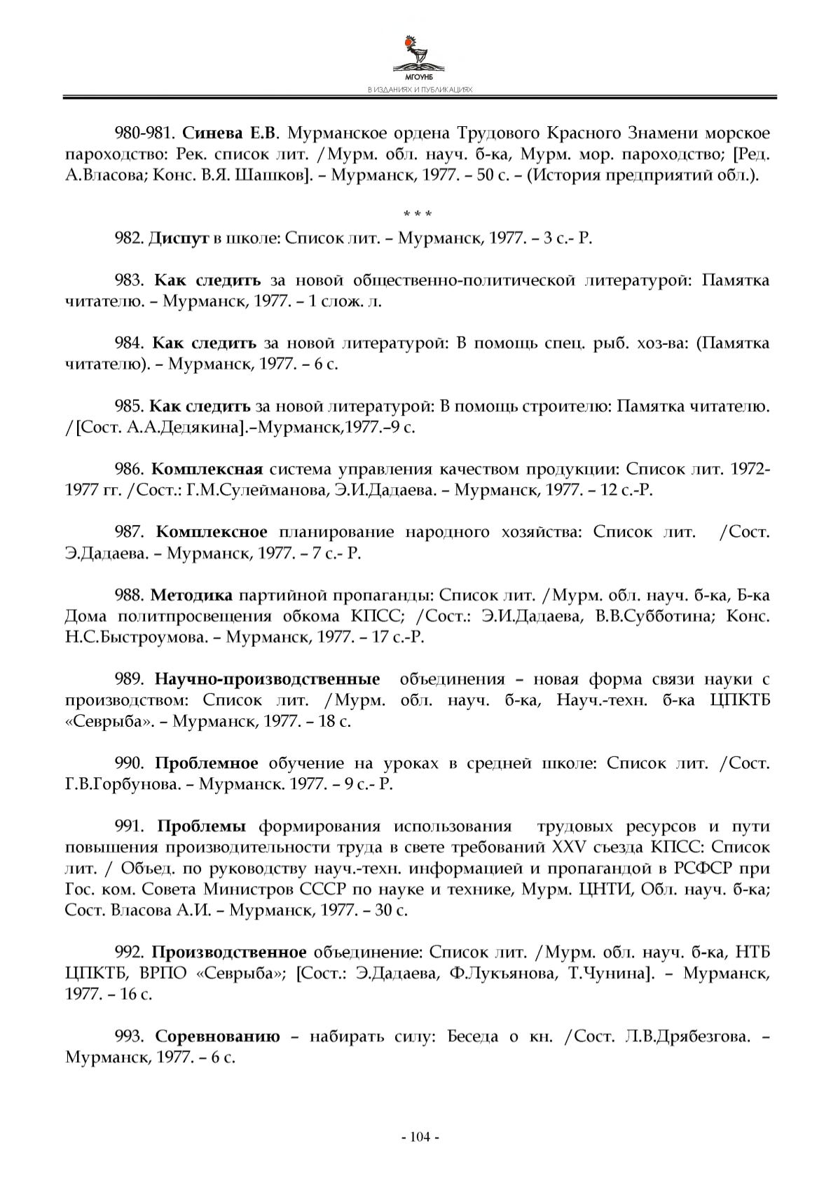 1 9 7 7 гг. /С о с т . : Г .М .С у л ей м ан о в а , Э .И .Д а д а е в а . - М у рм ан ск , 1 9 7 7 . - 1 2 с .-Р .