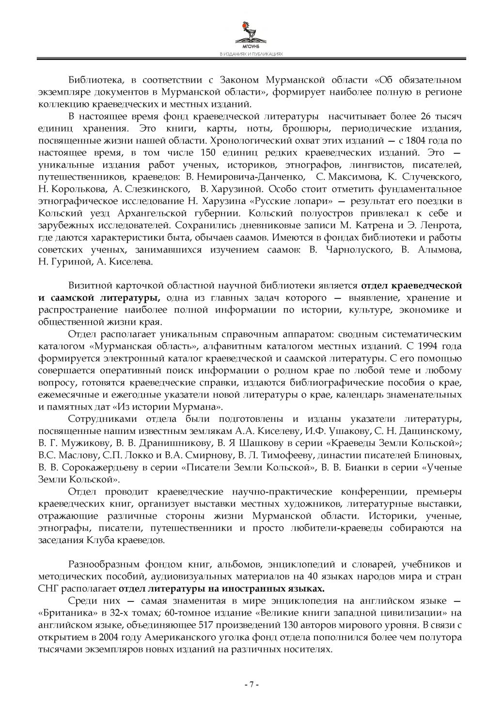 каталогом «Мурманская область», алфавитным каталогом местных изданий. С 1994 года